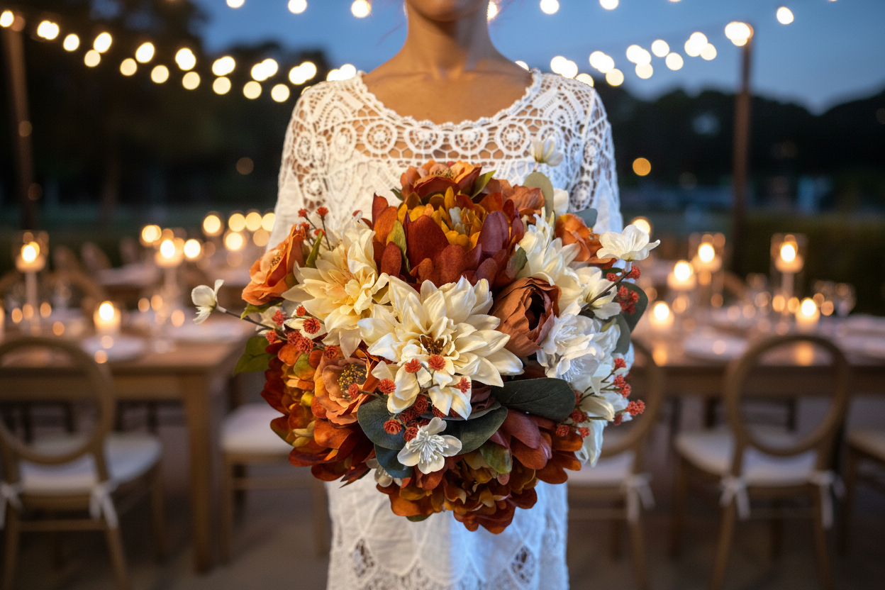 You should look as great leaving the wedding as you do walking down the aisle. Unlike traditional flowers, our faux florals won't wilt, fade or droop as the night goes on.